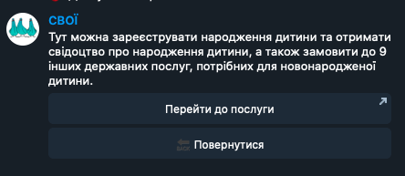Відразу після створення запису відповідна кнопка з'являється у чат-боті в розділі е-Послуги