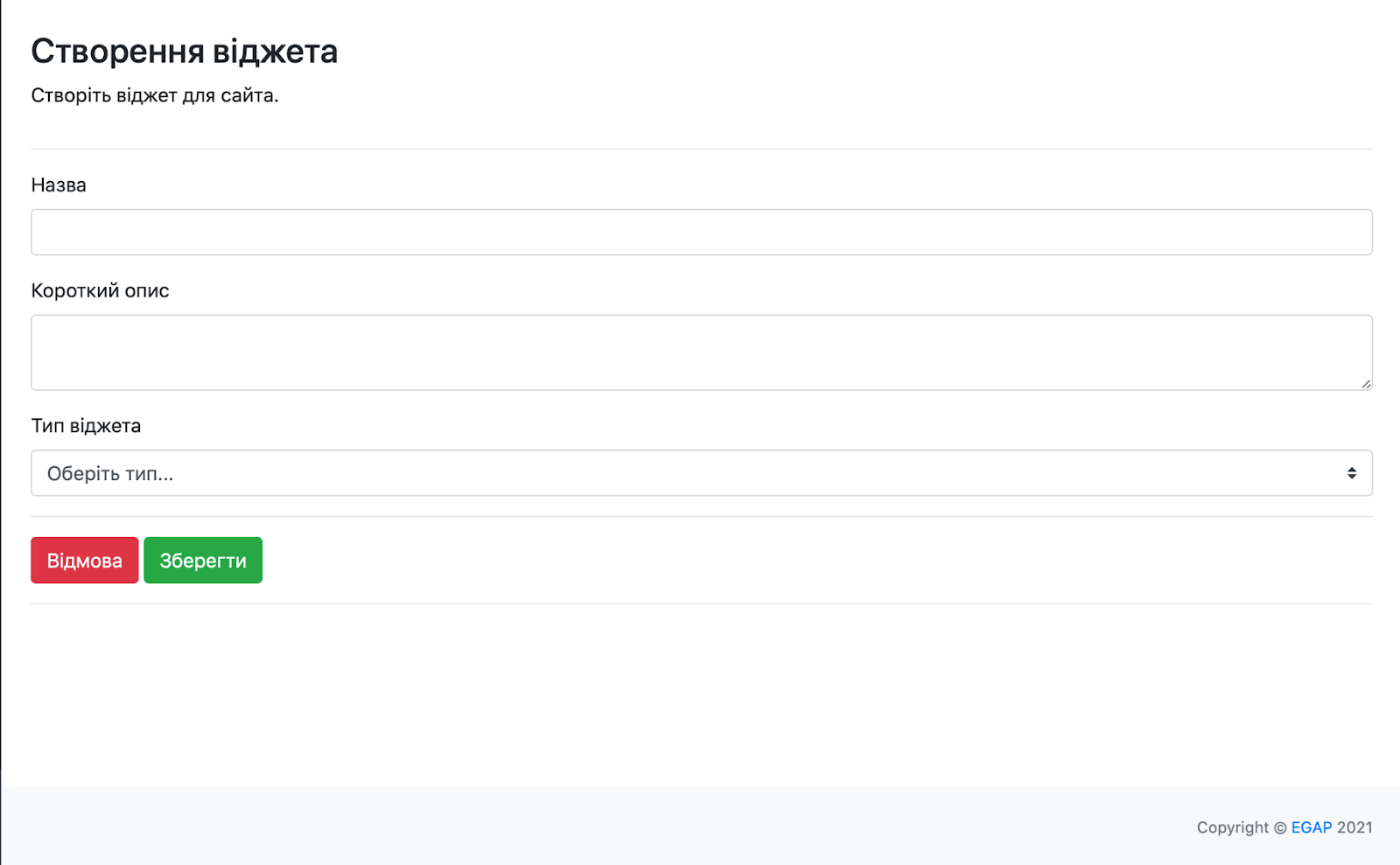 Інтерфейс створення та редагування віджета передбачає заповнення наступних полів:
